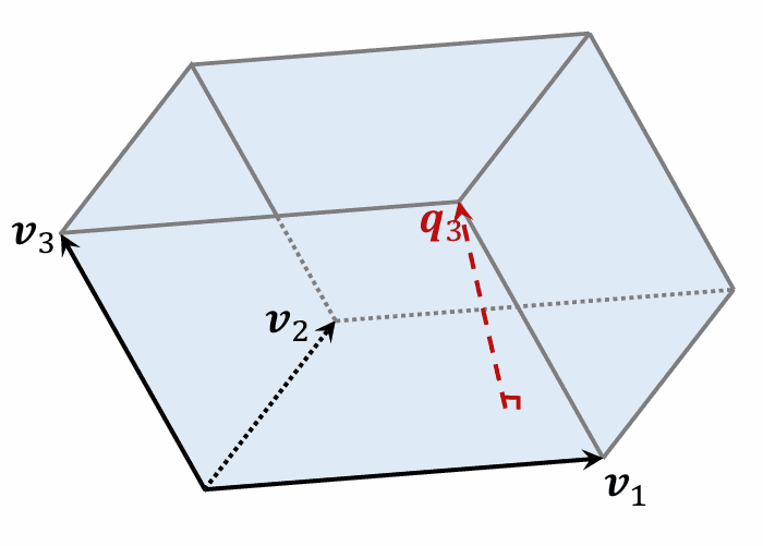 如果 线性相关,则体积 。(例:有 个向量,落在一个平面上,则平行六面体的体积为 0。)